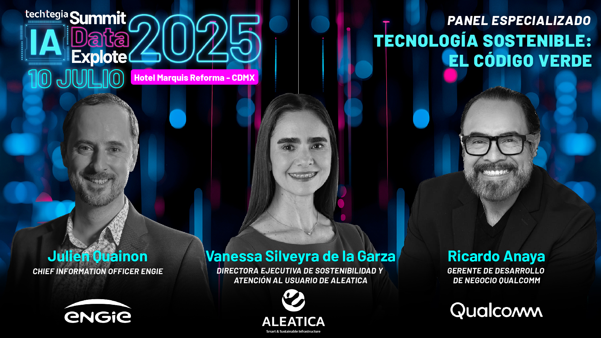 La tecnología, además de habilitar la eficiencia y la hiper-automatización, se ha consolidado como un factor crucial para alcanzar los objetivos de sostenibilidad global. En el Panel de Sostenibilidad del IA Summit Data Explote -organizado por Techtegia en julio de 2025- y  titulado «Tecnología Sostenible: El Código Verde», líderes de sectores clave —energía, infraestructura y semiconductores— compartieron cómo están redefiniendo sus operaciones para reducir el impacto ambiental.